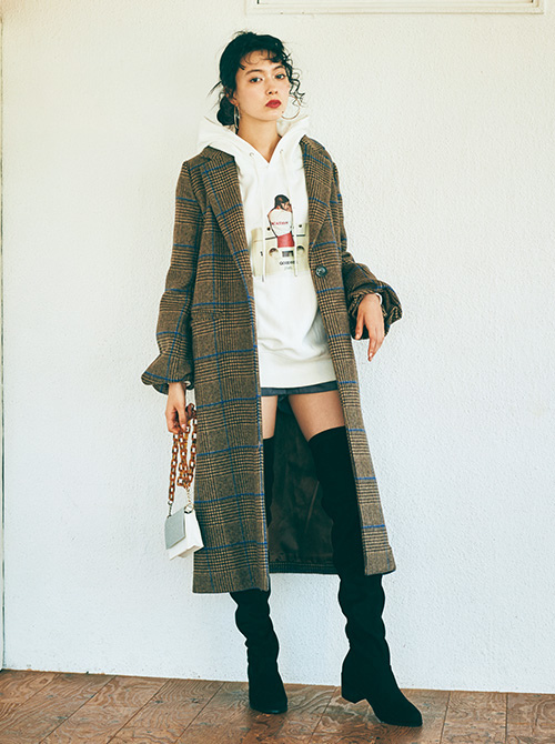 我覺得搭帽T和迷你裙+過膝靴也顯得很年輕