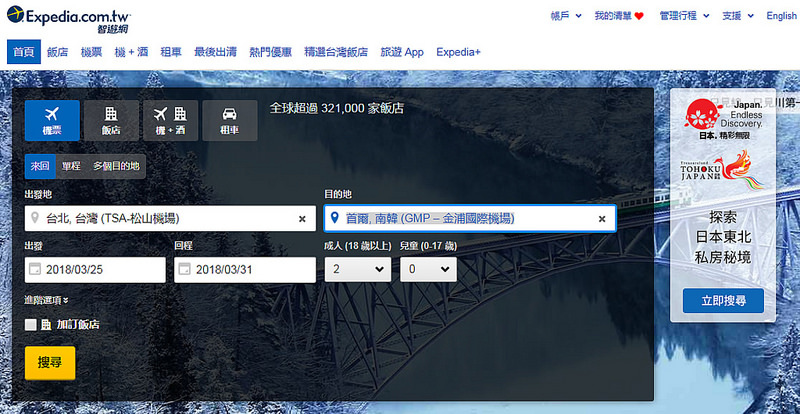 (三) 航空:訂機票 智遊網 (Expedia)
