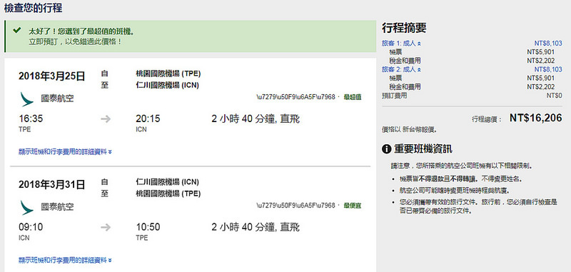 要注意有桃園到仁川機場