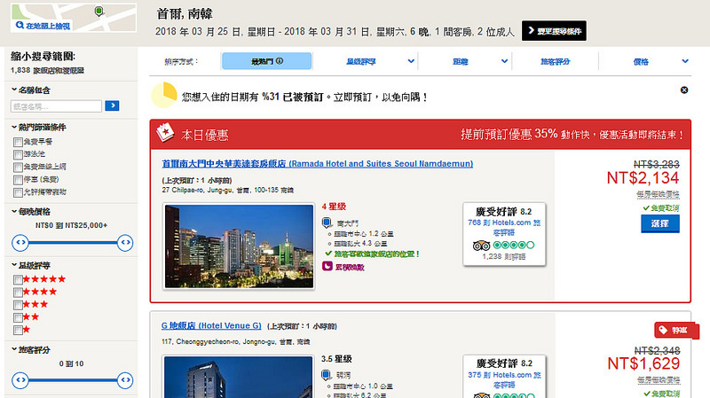 接下來會顯示首爾尚有空房的飯店