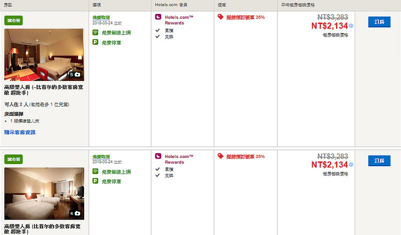 這個頁面會顯示各種房型