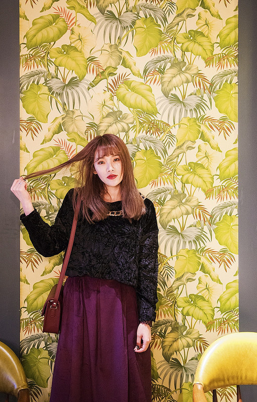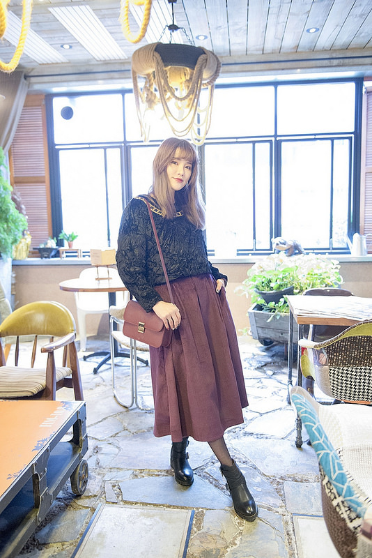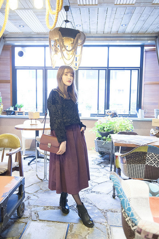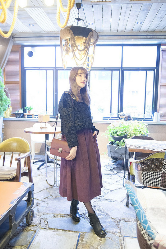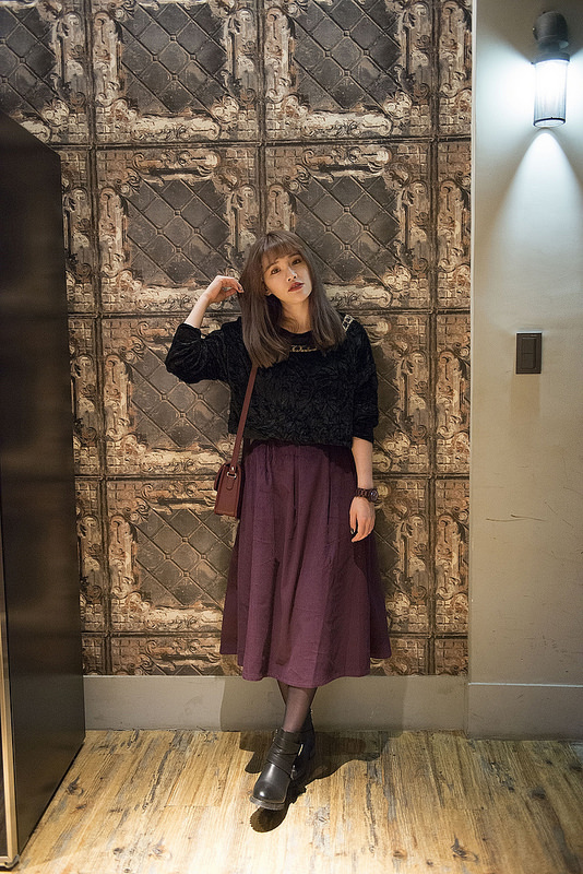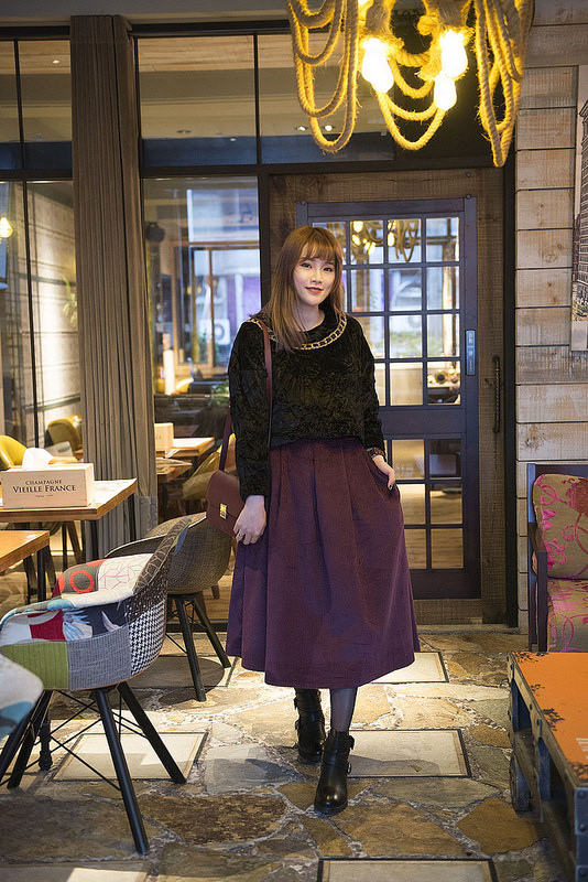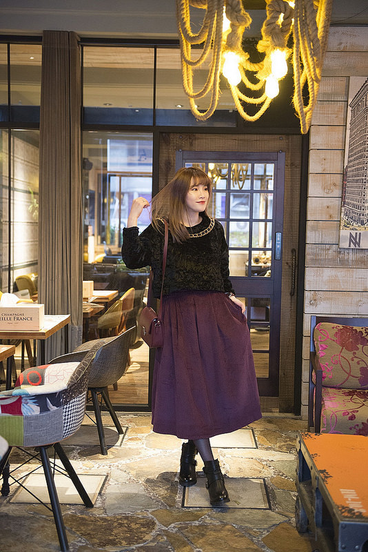 我這套是黑色絲絨上衣和紫色中圓裙的搭配