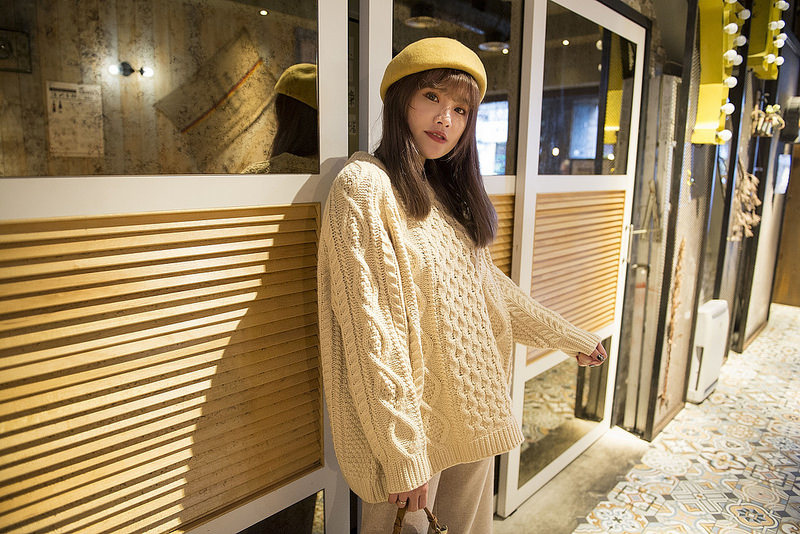 CREAMCHILD自制冬新品日系古着感奶油手工羊毛编织麻花厚实毛衣女