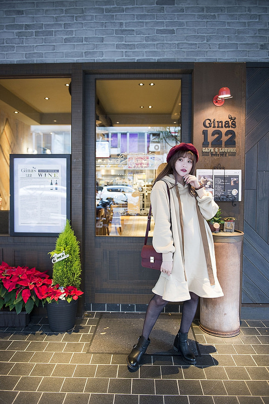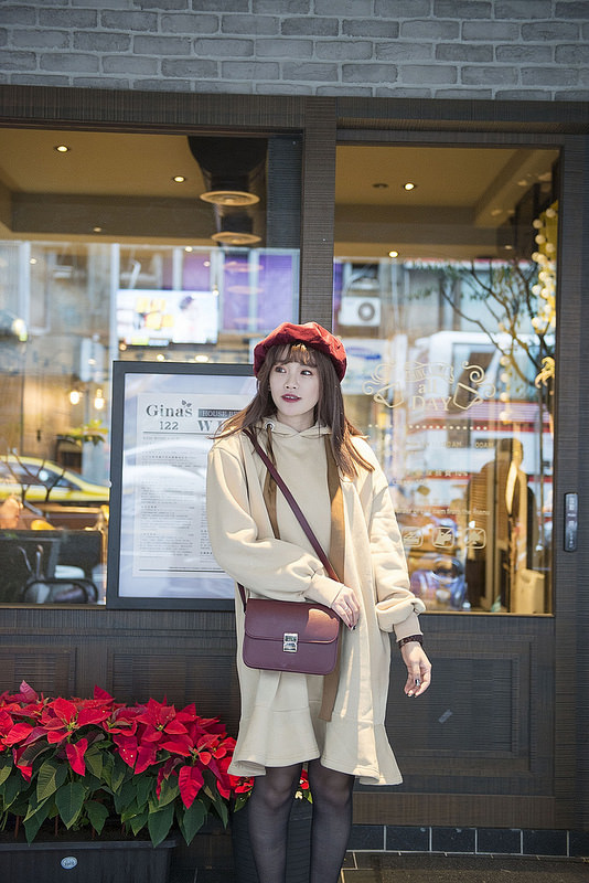 這套很乾脆就是剛剛的連帽T洋裝加上粉紅毛毛外套的搭配