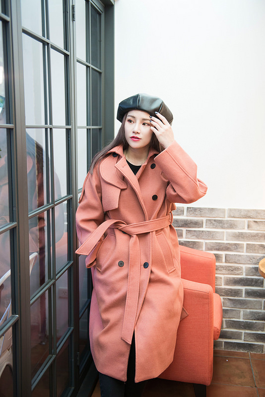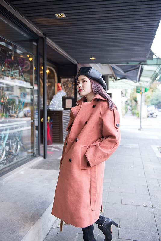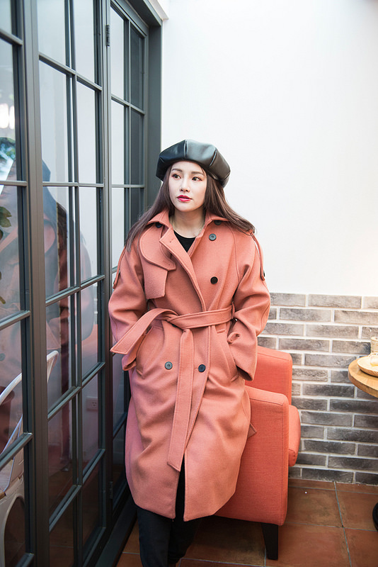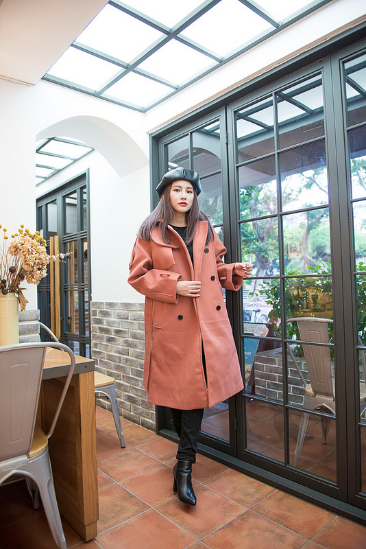NO 9.楓葉色寬鬆雙排扣長版大衣