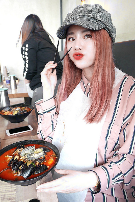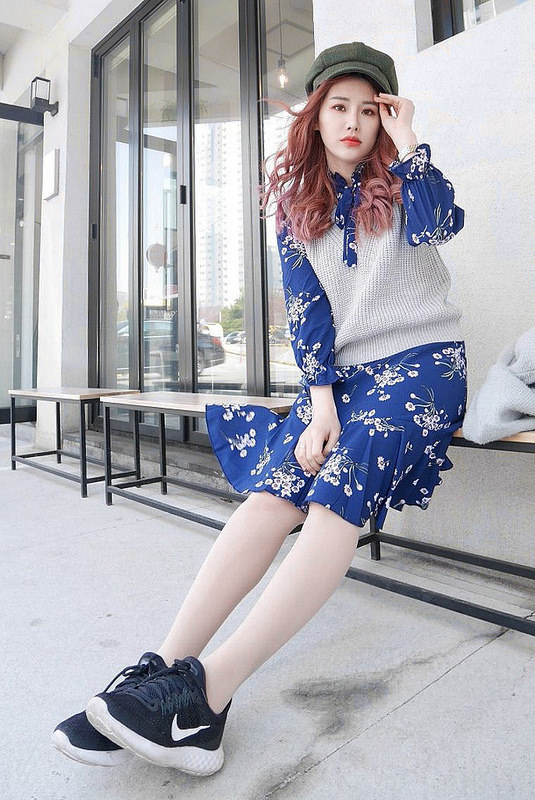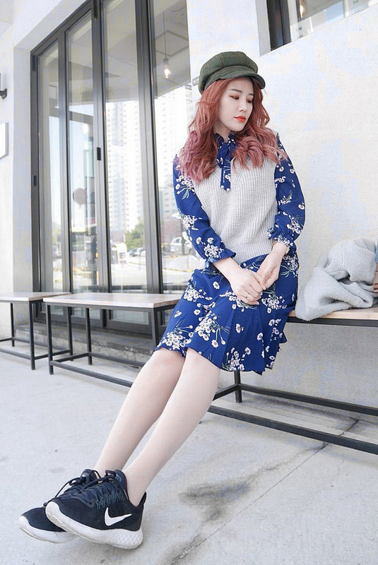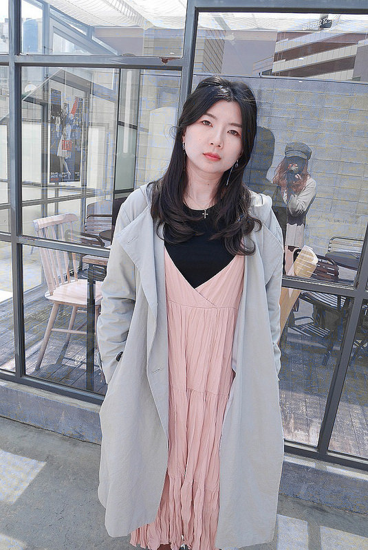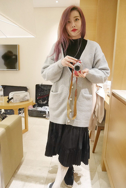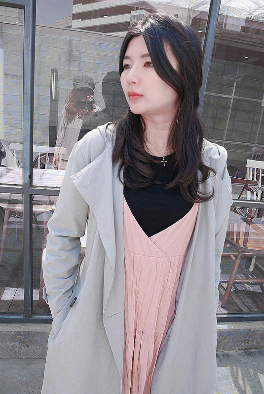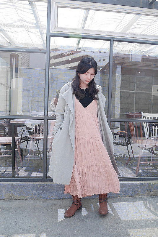 他是黑色內搭+他在釜山買的粉紅洋裝
