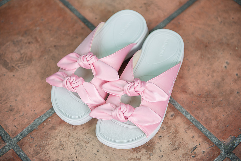 HANNFORT Ultra Comf 4D真絲蝴蝶結厚底拖鞋-女-珊瑚粉