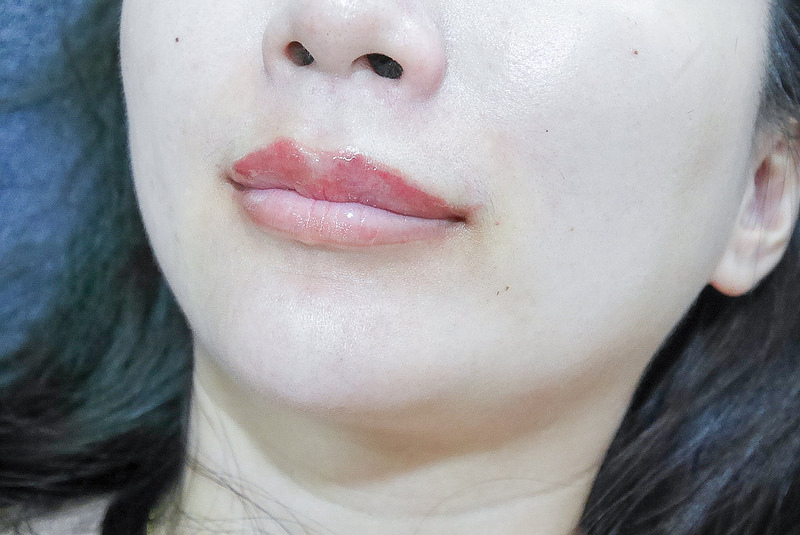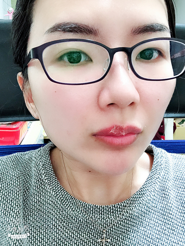 (以前遮瑕膏打底的唇妝,脫妝後都很醜......一塊一塊的