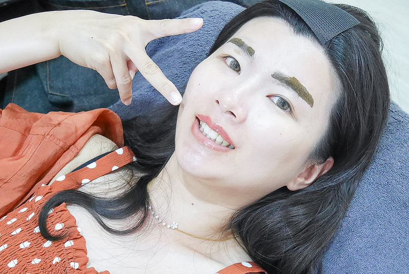 做完繡唇期間,愛娜先幫我的眉毛整理好先夫舒緩膏