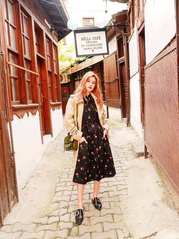 洋裝配上風衣,就是經典沒什麼好說的
