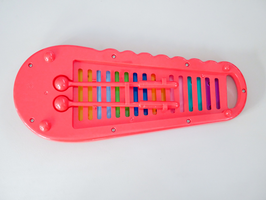 讓孩子開心手持鐵琴棒,輕輕敲打發出不同音階的亮麗聲響。